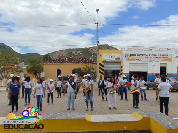 O Desfile saiu da sede da Escola, no Bairro do Projeto Sertanejo em Itiúba e percorreu as ruas da cidade. Dividido por alas como: Primeiros habitantes do Brasil, São João, futuros profissionais, literatura, cultura etc, as crianças deram um show na performance regida pela Filarmônica 4 de Janeiro.