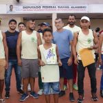 Logo após aconteceu a entrega as chuteiras, meiões e coletes para as crianças, fruto do apoio de patrocinadores. Estiveram presentes no evento a Prefeita Cecilia Petrina e o Vice Prefeito Zé do Rádio, que parabenizaram a iniciativa do organizador do evento, Mimim Batista