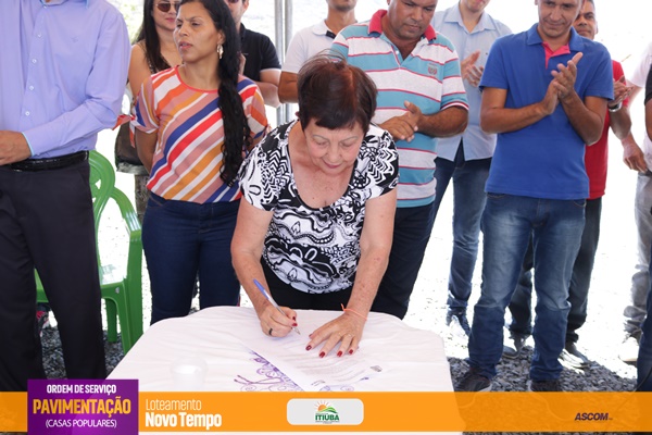 A ordem de serviço que autorizou o início das obras de pavimentação em paralelepípedo do Bairro Loteamento Novo Tempo (Casas Populares), foi assinada em clima de festa nesta quinta – feira, 05 de dezembro. A Prefeita Cecilia Petrina que estava acompanhada de sua comitiva formada de Vereadores, Secretários e correligionários chegaram em carreata em comemoração ao tão sonhado calçamento.