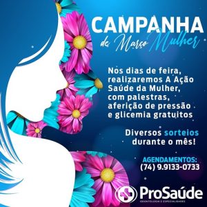 A Clínica Prosaude estará realizando um Campanha nos dias de feira, onde terá a Ação da Saúde, com palestras, aferição de pressão e glicemias gratuitas.