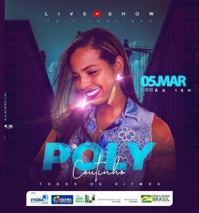 Com o nome Poly Coutinho para todos os ritmos, o projeto em parceria com a Lei Aldir Blanc, contará com sucessos do sertanejo, vanerão, forro romântico e Axé Music. A Live terá início às 18:00 horas.
