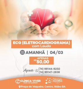 A Clínica Viver em Itiúba, terá exames de Eletrocardiograma  com laudo, por apenas R$: 50,00, nesta quinta – feira, 04 de março de 2021.