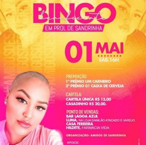 Amigos e familiares da jovem Sandrinha Miranda estarão realizando um bingo beneficente nesse sábado 01 de maio.