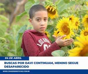 As buscas pelo pequeno Davi Lima de 11 anos que está desaparecido desde a tarde do último domingo, 28 de março de 2021 continuam.