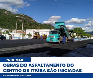 Iniciaram oficialmente na manhã desta quarta – feira, 26 de maio de 2021, as obras do asfaltamento do centro da Cidade de ITIÚBA.