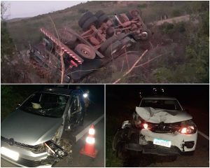 Um grave acidente automobilístico foi registrado no final da tarde desta quarta-feira (26/05), na altura do Km 99, da BR 407, próximo a Fazenda Alvorada, em Jaguarari. O fato envolveu três veículos, um VW Fox, de Juazeiro (BA), um Renault Kwid de Petrolina (PE) e um caminhão carregado com madeiras, de Caruaru (PE).