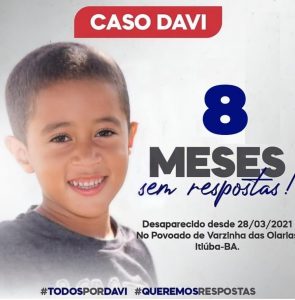 Desaparecimento de Davi Lima completa 8 meses sem respostas