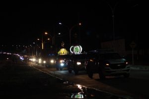 Sob o comando do Padre João Eleutério, a carreata percorreu as ruas da cidade com a imagem da Padroeira, seguida pelos fieis em seus carros, motos e Bikes.