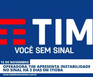 A operadora TIM está apresentando instabilidade no Sinal em ITIÚBA já a 3 dias.
