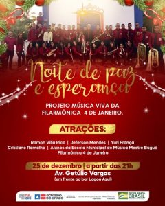 A Filarmônica 4 de Janeiro fará apresentação natalina no próximo dia 25 de Dezembro de 2021.