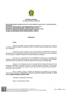 Uma Ação de Impugnação de Mandato Eleitoral (AIME) em andamento na Justiça Eleitoral da Comarca de Itiúba protocolada ainda em 2020 pelo Partido Liberal (PL), contra o grupo do atual prefeito de Ponto Novo que aconteceria em uma audiência virtual marcada para 15 de dezembro de 2021, foi remarcada para o dia 08 de fevereiro de 2022.