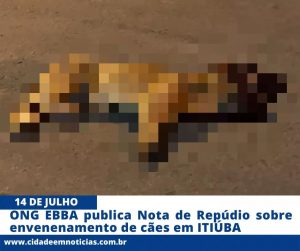 A ONG EBBA – Em busca do bem animal publicou uma nota de Repúdio sobre o envenenamento de cães no município de ITIÚBA.