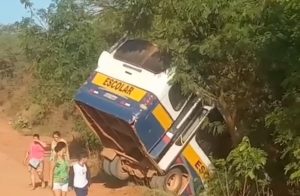 Na manhã desta quarta-feira (16), um ônibus que transportava passageiros de Aribicé com destino à cidade de Euclides da Cunha, perde o controle e desce em uma ribanceira na localidade Lage.