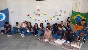 A turma do 9° da Rita Carolina, apresentou a primeira etapa do SARAU HISTÓRICO, orientado pela professora de História Ivanize Santana. A temática foi refletir sobre o exercício da Democracia ao longo do período de 1945 (pós- DITADURA VARGAS) aos dias atuais e a obediência à Carta Magna/Constituição de 1988. Neste dia, foram apresentados em três momentos, fatos da República Populista até a Ditadura Militar ou Anos de Chumbo, com músicas da época, recortes de vídeos com depoimentos, cordéis e breves encenações. Dia 24/11, dando prosseguimento, a turma trouxe mais três momentos: A Redemocratização ou Nova República… Representaram pessoas que, lutaram e sobreviveram aos PORÕES DO REGIME MILITAR, anunciaram a morte de Tancredo Neves, a comoção no país…sob o clima musical “CORAÇÃO DE ESTUDANTE…” mostraram  numa linha do tempo viva, os presidentes da República, desde Sarney até Bolsonaro, cada um retratando dos seus governos os altos e baixos.