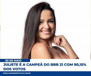JULIETE É A CAMPEÃ DO BBB 21 COM 90,15% DOS VOTOS