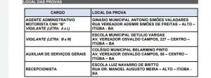 LOCAIS E HORARIOS DE PROVAS DO CONCURSO DA CÂMARA DE ITIÚBA SÃO DIVULGADOS