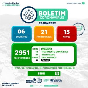 A Prefeitura de Itiúba divulgou na noite desta quarta-feira – feira, o boletim epidemiológico do município referente ao dia 23.