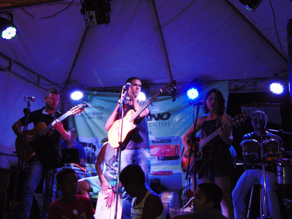 Sob um sol escaldante, o show teve inicio as 14:00 horas, e a comunidade participou cantando e dançando do inicio ao fim.