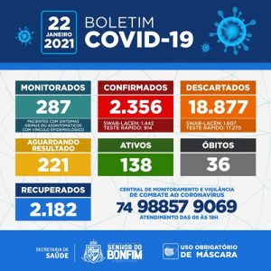 A Prefeitura de Senhor do Bonfim divulgou na noite desta sexta – feira, 22 de janeiro de 2021, o Boletim Epidemiológico que confirmou mais um óbito por COVID-19.