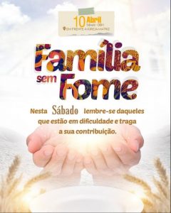 O Projeto Família sem Fome realizará campanha de arrecadação de alimentos neste sábado, 10 de abril de 2021.