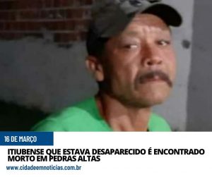 ITIUBENSE DESAPARECIDO É ENCONTRADO MORTO EM PEDRAS ALTAS